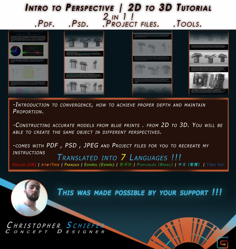 2D to 3D Construction Tutorial. Perspective Knowledge. Comes with 7 Languages, PDFs, PSDs, JPGS, brushes and tools used in this compendium.